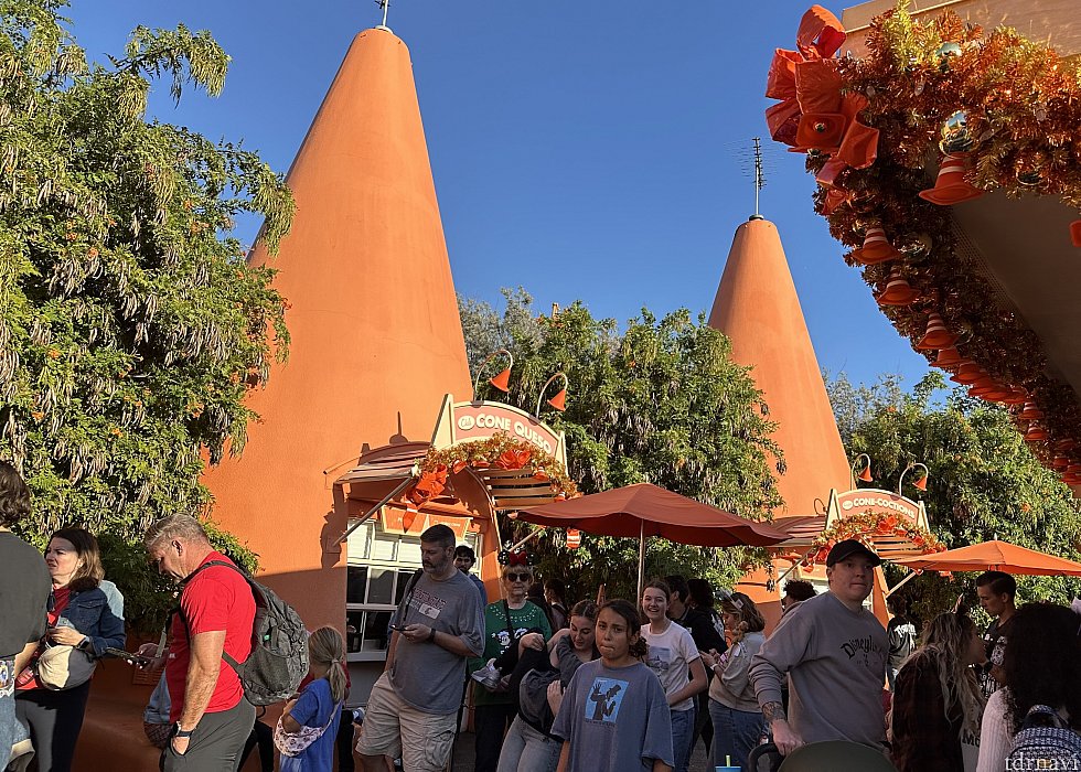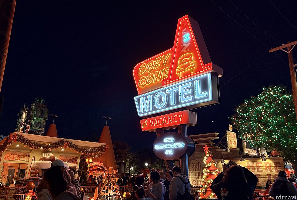 カーズの映画にも登場する、あの三角コーン型のモーテルを再現したフードエリア。