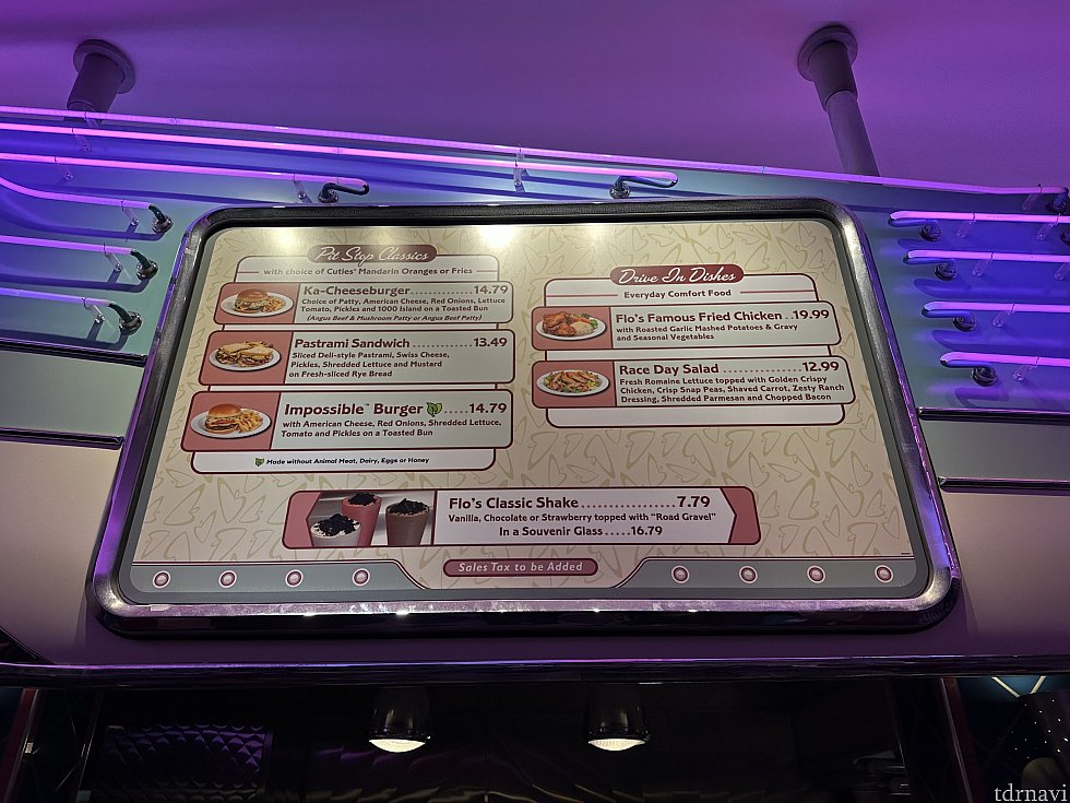 特にテラス席の一部からは、カーズのアトラクションを眺めながら食事ができる席もあり、雰囲気重視の方にもぴったりです。