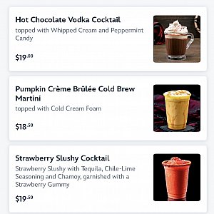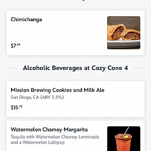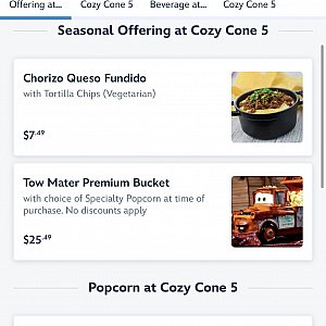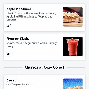 チュロスやポップコーンなどの軽食から、カクテルなどのドリンク系まで種類が豊富で、