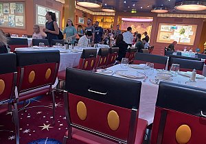 私は7泊のクルーズだったので2回もしくは3回レストランへ訪れることができました。1回目はミッキーが登場!