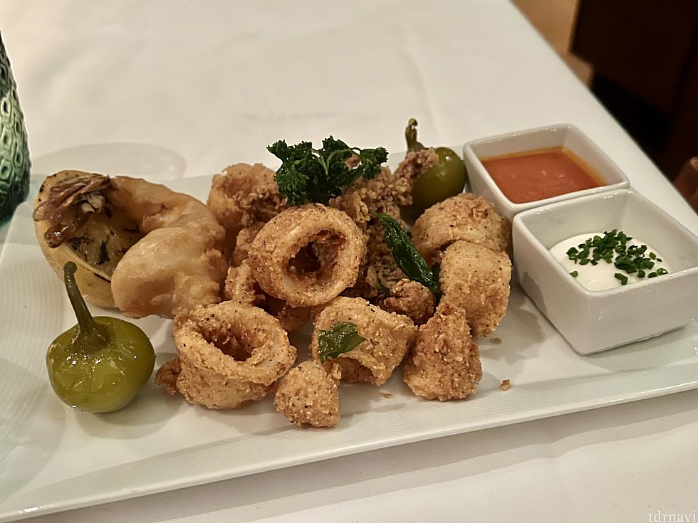 マリナーラソースとレモンガーリックマヨネーズがついてます。