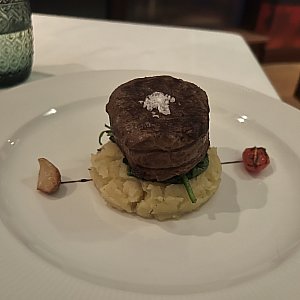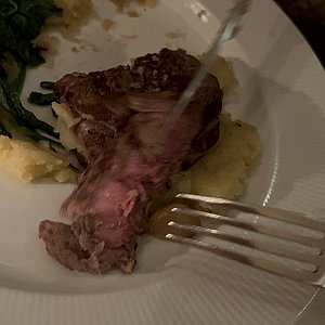 ナイフでもなかなか切れない、かみごたえのある赤身肉です。硬いわけではなかったです。