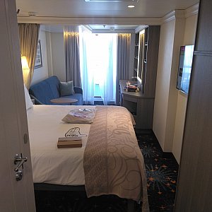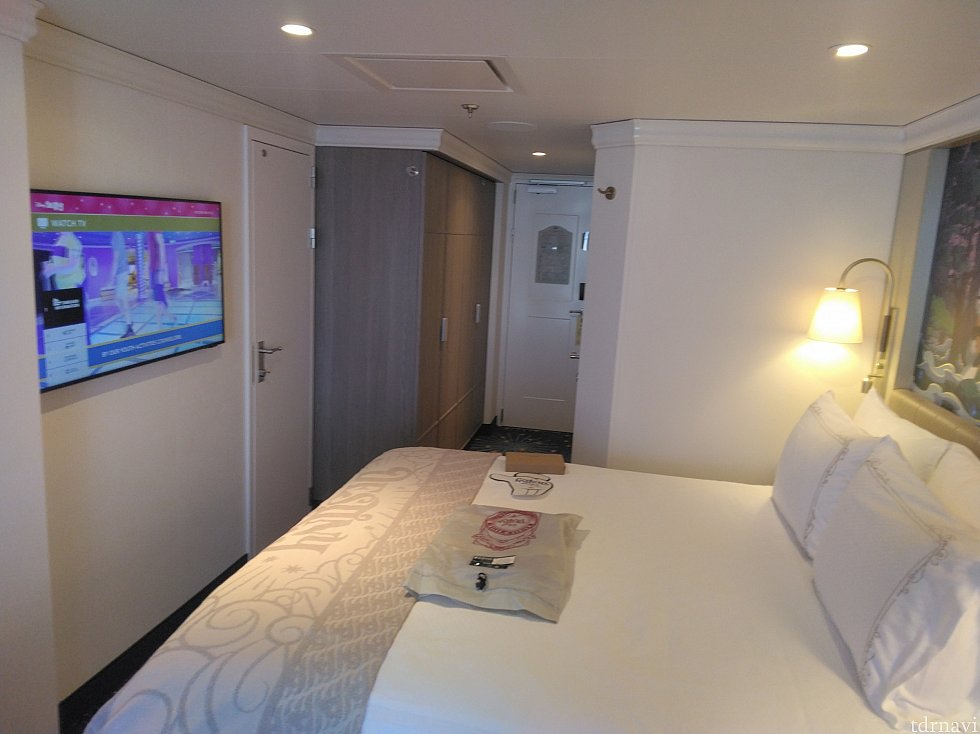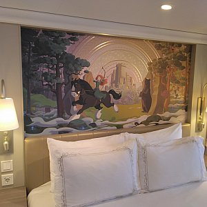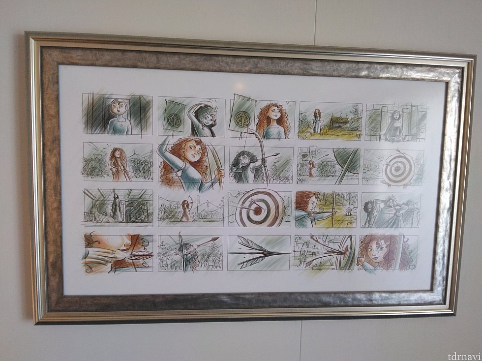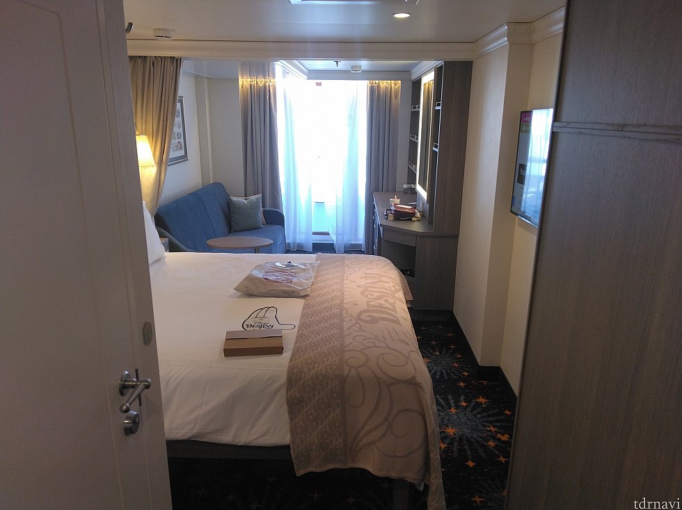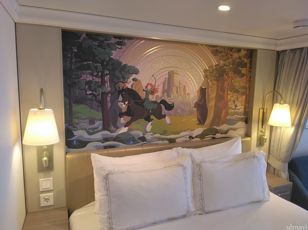 ベランダカテゴリの部屋に滞在しました。デッキ9のコンセプトはメリダとおそろしの森なので、客室や廊下も。