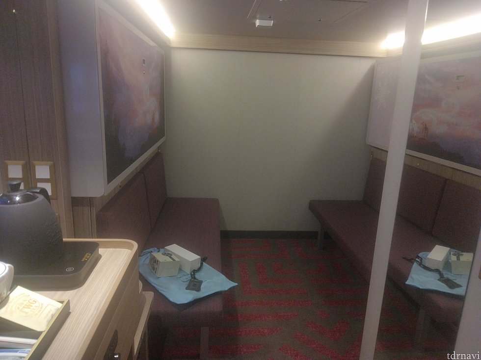 ご存じの通り、処女航海が3か月延期されたため、半額キャッシュバックがありました。折角なので、バックされた金額内でBTBできないか検討したところ、ベランダとの比較としてインサイドに宿泊してみました