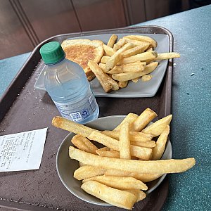 いままでチーズバーガーかメデイタリアンチキンサラダしか食べたことありませんでしたが、今回はバッファローグリルチーズチキンサンドイッチ$12.79にしました。サイドはサラダさフレンチフライか選びます。フレンチフライにしました。この日は寝不足で3食しっかりいただく私ですがコーヒーのみ、腹ペコすぎてフレンチフライ追加してしまった。