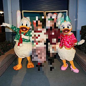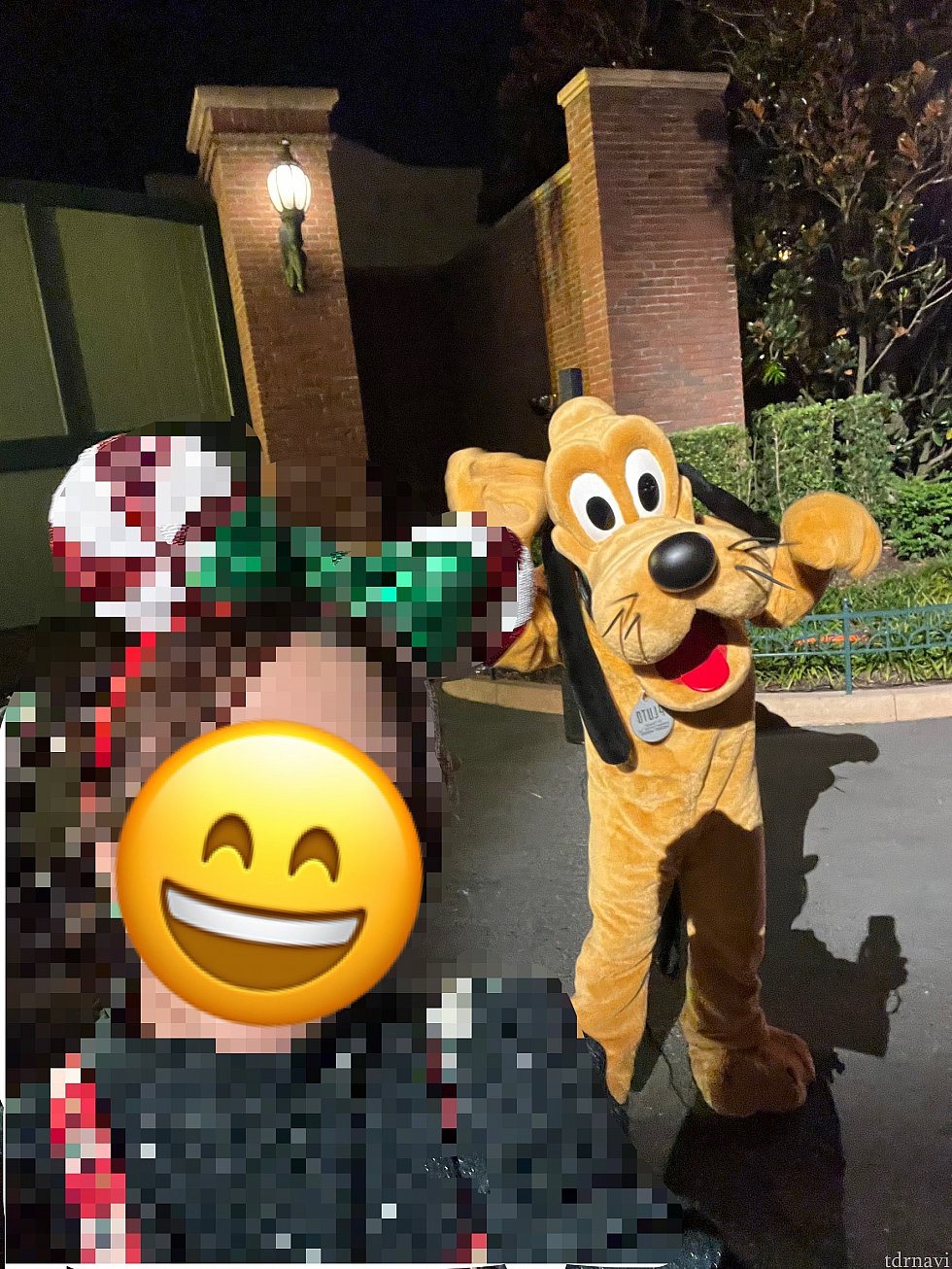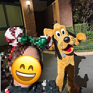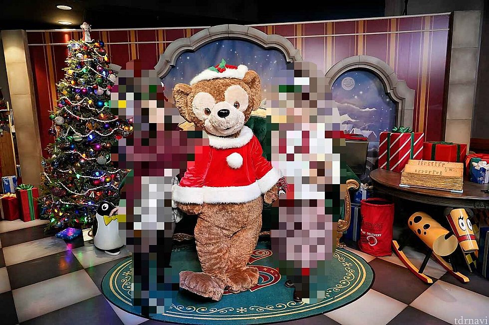 レックスグリの近くがキャラクターが休憩に戻る場所なので、運良く見ることができました。クリスマスらしいマフラーをしていていました!