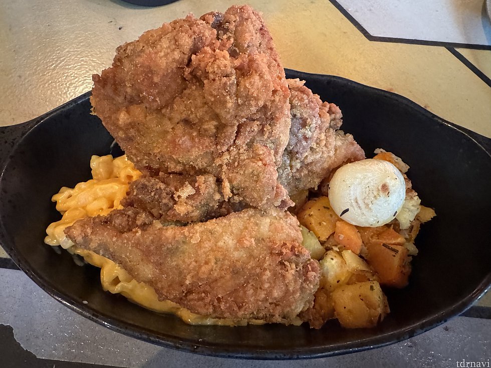 クリスピーフライドチキンとマック&チーズ。チキンがものすごくデカかったです。写真の通り歯ごたえのあるガリガリとしたフライドチキンで、全部一人で全部食べるとたぶん胃もたれするので、シェアするのが良いと思います。