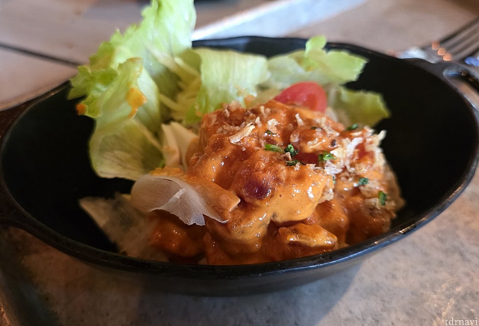 チキンがものすごくデカかったです。写真の通り歯ごたえのあるガリガリとしたフライドチキンで、全部一人で全部食べるとたぶん胃もたれするので、シェアするのが良いと思います。
