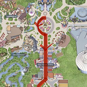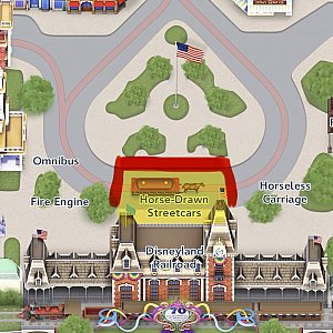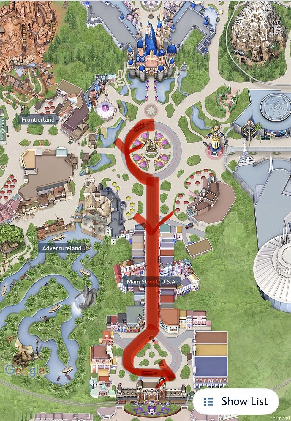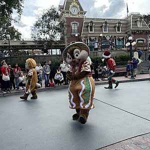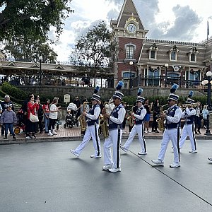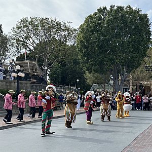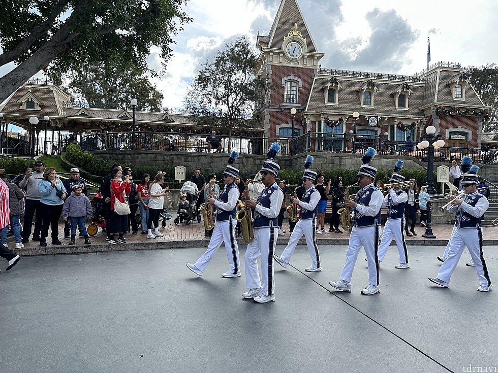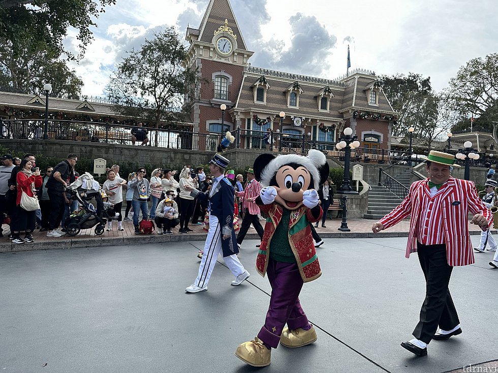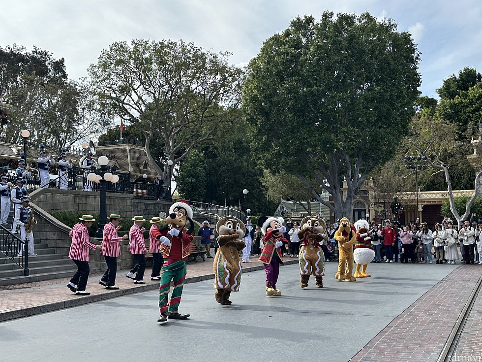 キャラクターとマーチングバンドがパレードをし、メインストレートUSAを通り、ディズニーランド鉄道のところまでやってきます。