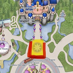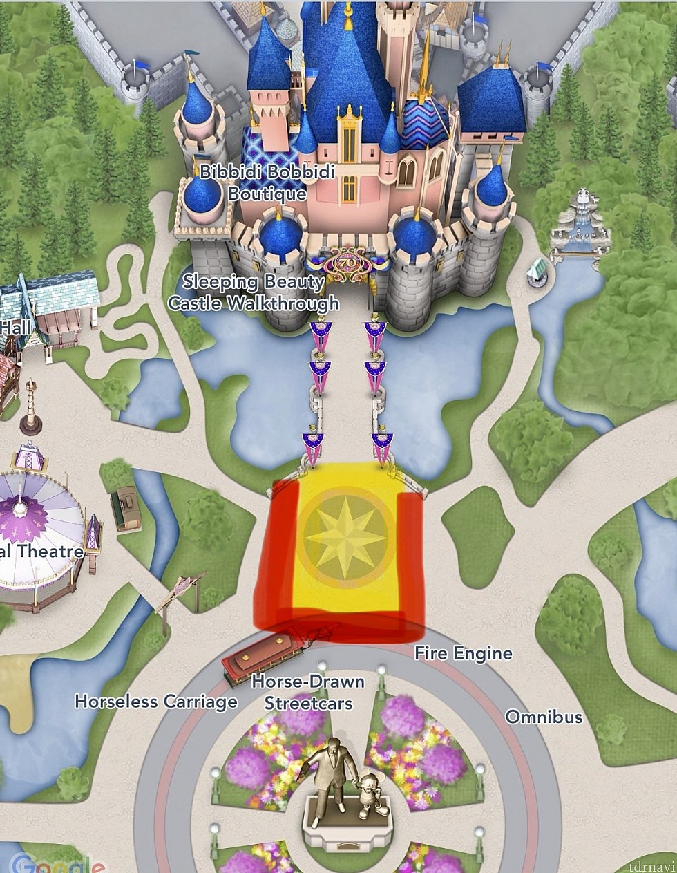 キャッスル前の広場とエントランスのディズニーランド鉄道の乗り場で開催します。とくにステージなどはなく、キャストさんの指示に従って最前列が決まっていく感じです。