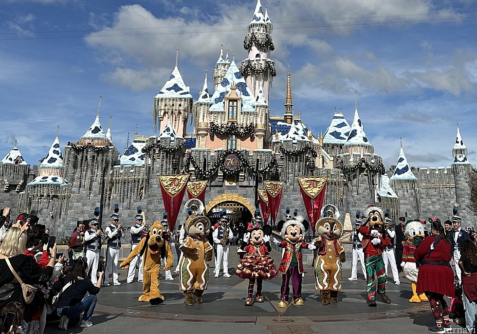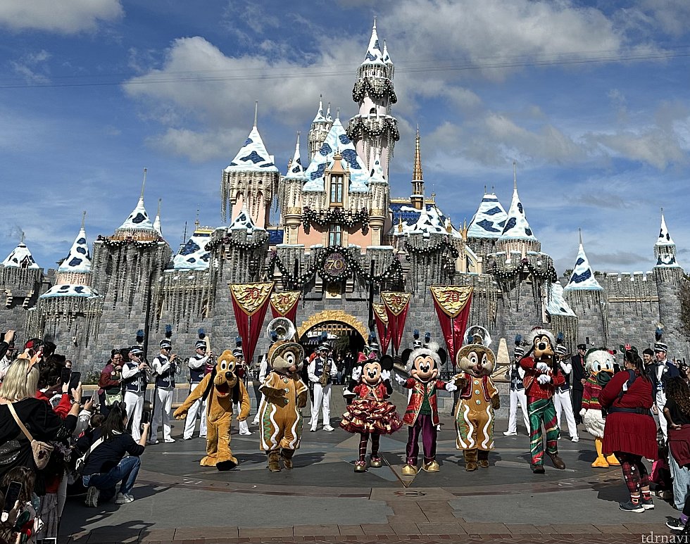 アナハイムディズニーランドの70周年は特に新しいショーはなく、クリスマス期間はカバルケードパレードもないので、キャラクターをショーパレで見れる機会がかなり少ない期間です。