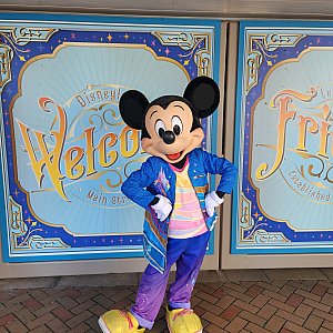 東京と同じような感じで、入口入ってすぐのメインストリートでやってました。終わってしまっても次の回を待っていればミッキーがでてきて、グリーティングしてくれました!