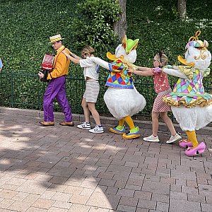 アコーディオンの音色に合わせてドナルドとデイジーがショーを繰り広げます。