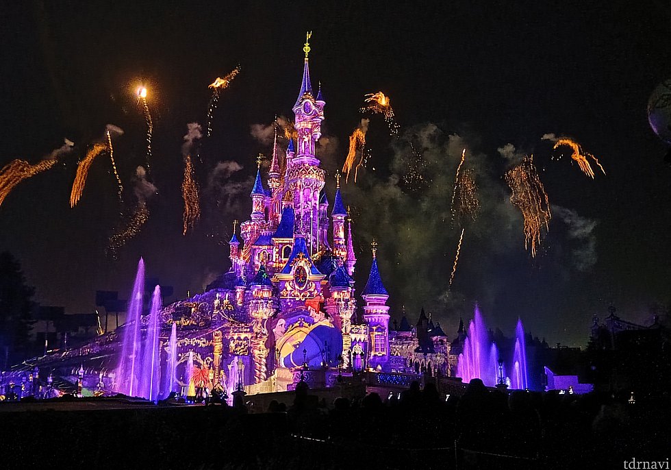 場所は昼パレードと同じく前方左の花壇。ロープが張られている最前で待つことにしました。