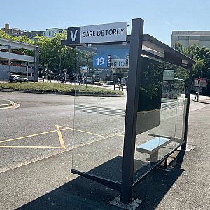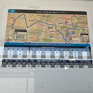 Torcy駅からシャルル・ド・ゴール空港まで快速バスが出ています(19系統)。所要時間は50〜60分ほど、料金は2ユーロです。