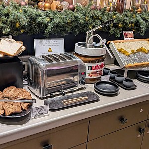 間違った思い込みで,ここはテーブルサービスのレストラン。朝食会場・アフタヌーンティー会場(15時-17時)・夜はノンアルコールのみフリーの会場でした。