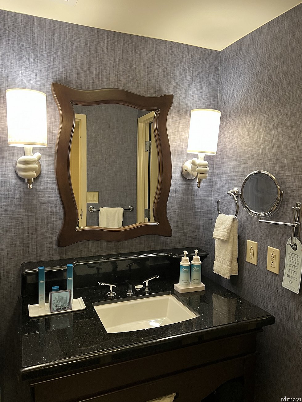 ドレッサーのライトがミッキーの手になってて素敵♡