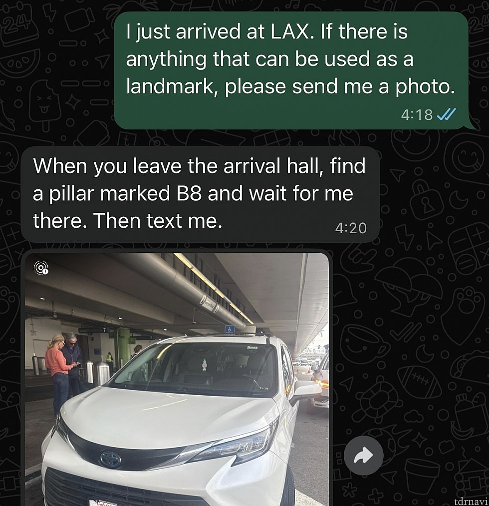 LAXに到着後、eSIMを接続するとすぐにWhatsAppにメッセージが届きました。