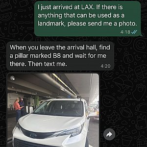 念のため「何か目印ある?」と聞いたら、車の写真まで送ってくれたので迷うことなくて本当に助かりました。画像が送れるのは便利!