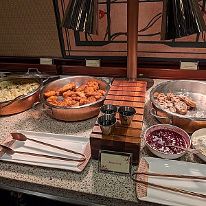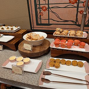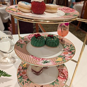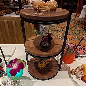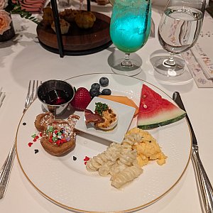 料理はアフタヌーンティー風のスタンドが食前と食後に2回出てきました。その他はブッフェで好きな料理を取ります。