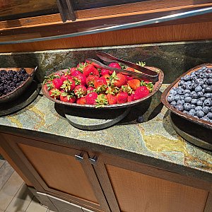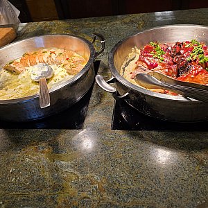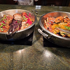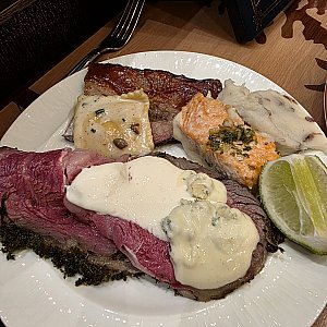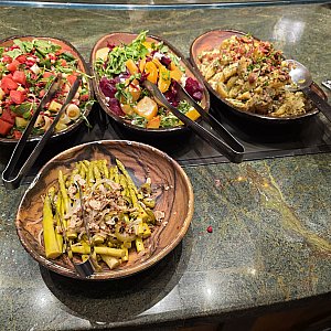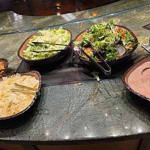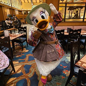 滞在期間中に朝食も利用したのですが、お肉がまるでステーキのような厚切りで皿にボンっと乗せてくれたり、サラダも種類豊富でパークご飯で不足しがちな野菜を接種するのにとても良かったです。料理の内容も◎です。お値段は13000円(チップ&TAX込み)くらいでしたがキャラクターもくるし、もうローストビーフなのかステーキなのか分からないようなお肉が出てきてこのお値段なら満足すると思います。