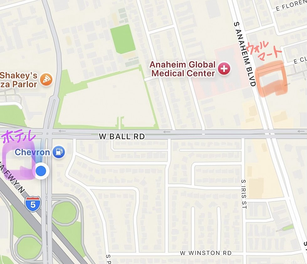 スーパーは徒歩15分くらいのところにウォルマートがあります。ここで朝食やお土産を買いました。ウォルマートに行く途中にはスタバやマックがありました。