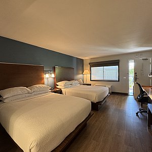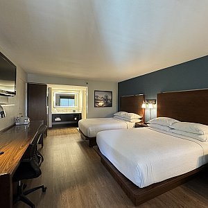 いたってシンプルですが広いベッドが2つとテーブル、小さいソファがあり部屋自体も広かったです。スーツケース2つ広げても全く邪魔になりませんでした。