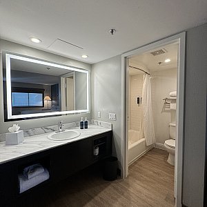 シャワーもバスタブがあり、鏡にもライトがついておりお化粧しやすかったです。