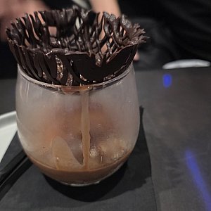 グラスの中にはジェラートが入っていて、上から暖かいチョコソースをかけて食べます