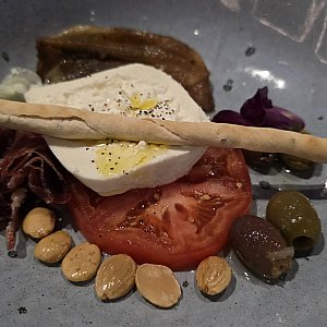 ブッラータチーズとイベリコハム、トマトの前菜。シンプルでさっぱりしていて美味しかったです。ボリューム的にもちょうどよかったです。