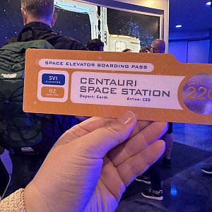 宇宙エレベーターに乗る前にチケットをもらいます