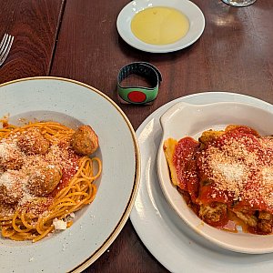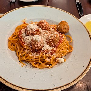 今回は親子3名で、看板メニューの「ラザニア」と「スパゲティ」を注文してシェアしました。特にこのラザニアは非常に重厚な味わいで、今回の旅行の中でも上位に入る美味しさでした。