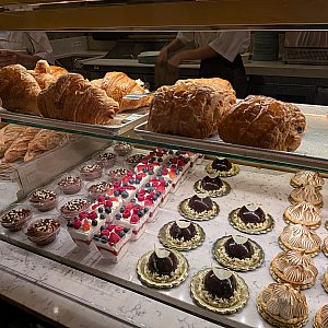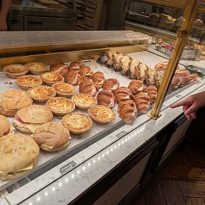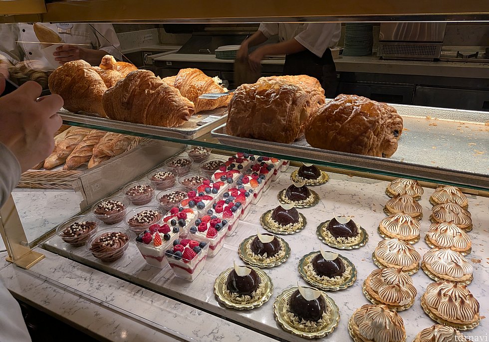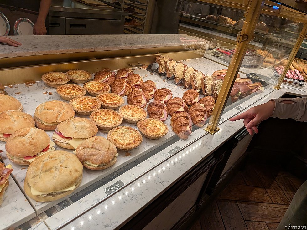 ハム&チーズのクロワッサンは食べ応えがあり、軽めの食事にもぴったりです。甘いものからお惣菜系まで揃っているので、エプコットでの朝食や休憩にとても重宝する一軒です。