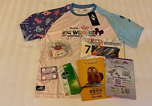 引き取りに行ったとき、小冊子のランナーズガイド、白Tシャツ、当日荷物入れバッグを受け取りました。(公式ではないのでEXPOもなかったです。)事前に頼んでおけば公式のラングッズもこのときに受け取りでした。ランホでゼッケン一色受け取りが出来て楽でした。