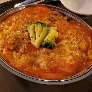 大きなポークが2つドカンと入っており、なかなかボリューミー!野菜は上に乗ってるブロッコリーの他に、ニンジンとマッシュルームが入っていました。トマトの甘さが美味しくてよくリピートしています。安定の美味しさ!