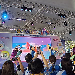 スタート30分前に、特設ステージでミッキー、ミニーが登場してストレッチが始まります。一緒にストレッチしている人はほぼおらず、単なるショーになっていました。
