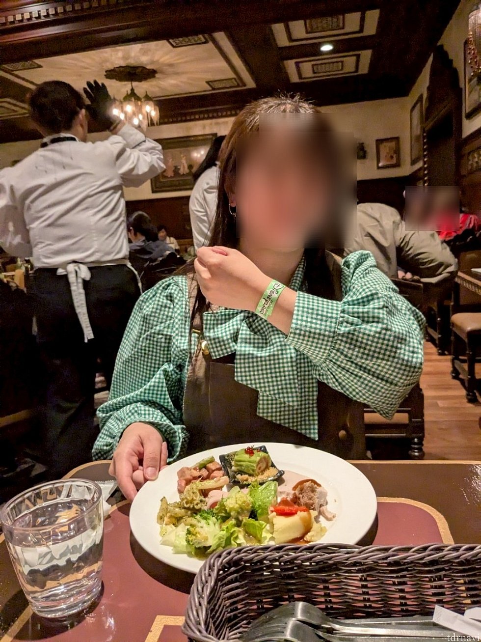 最初のお料理を取って、席に着いたタイミングでリストバンドをつけてもらいました。