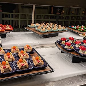 普段はメイン料理を注文し、そこに前菜やデザートのビュッフェが付くセミビュッフェスタイルですが、クリスマスの時期はすべてビュッフェに変更になっています。モーメンタスの鑑賞エリア入場の特典について変更はありません。