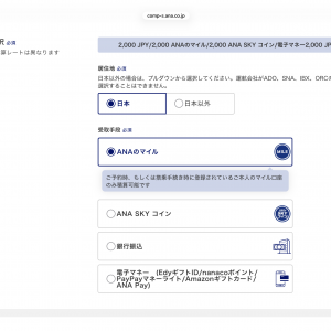 銀行振込や電子マネーなど様々な受取方法がありましたが、私はANAのマイルを選択。