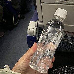 機内で再び同じ席に座り、離陸後30分ほどでお水のペットボトルが配られました。