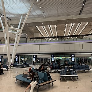第2ターミナル(Terminal 2)の1F、9-11番乗り場から無料シャトルバスですぐです。待合スペースは広くて新しく、とても快適です。