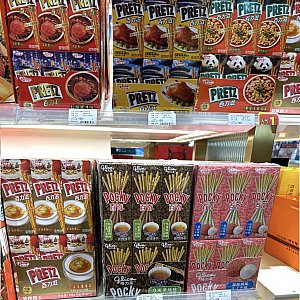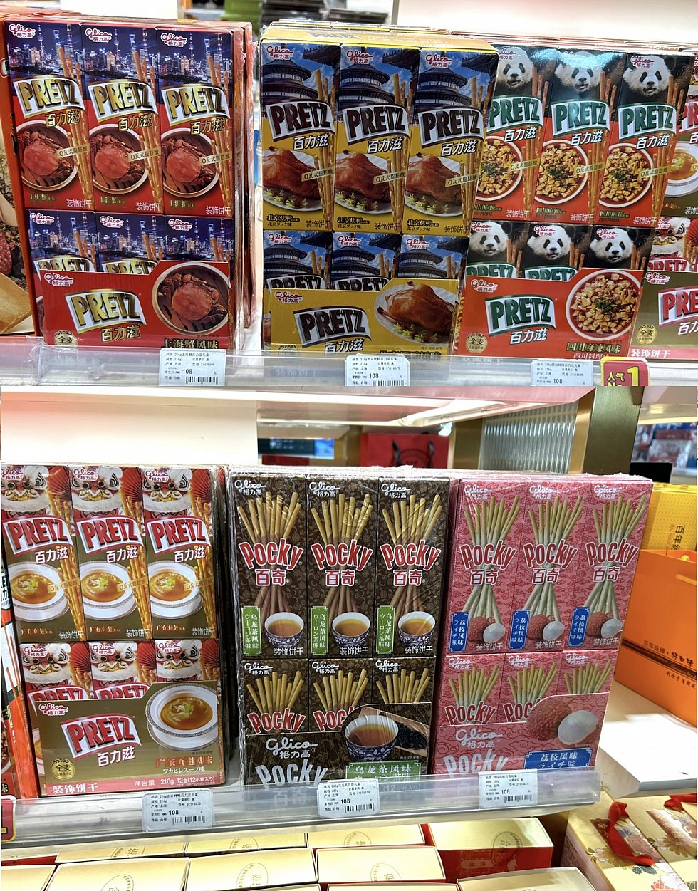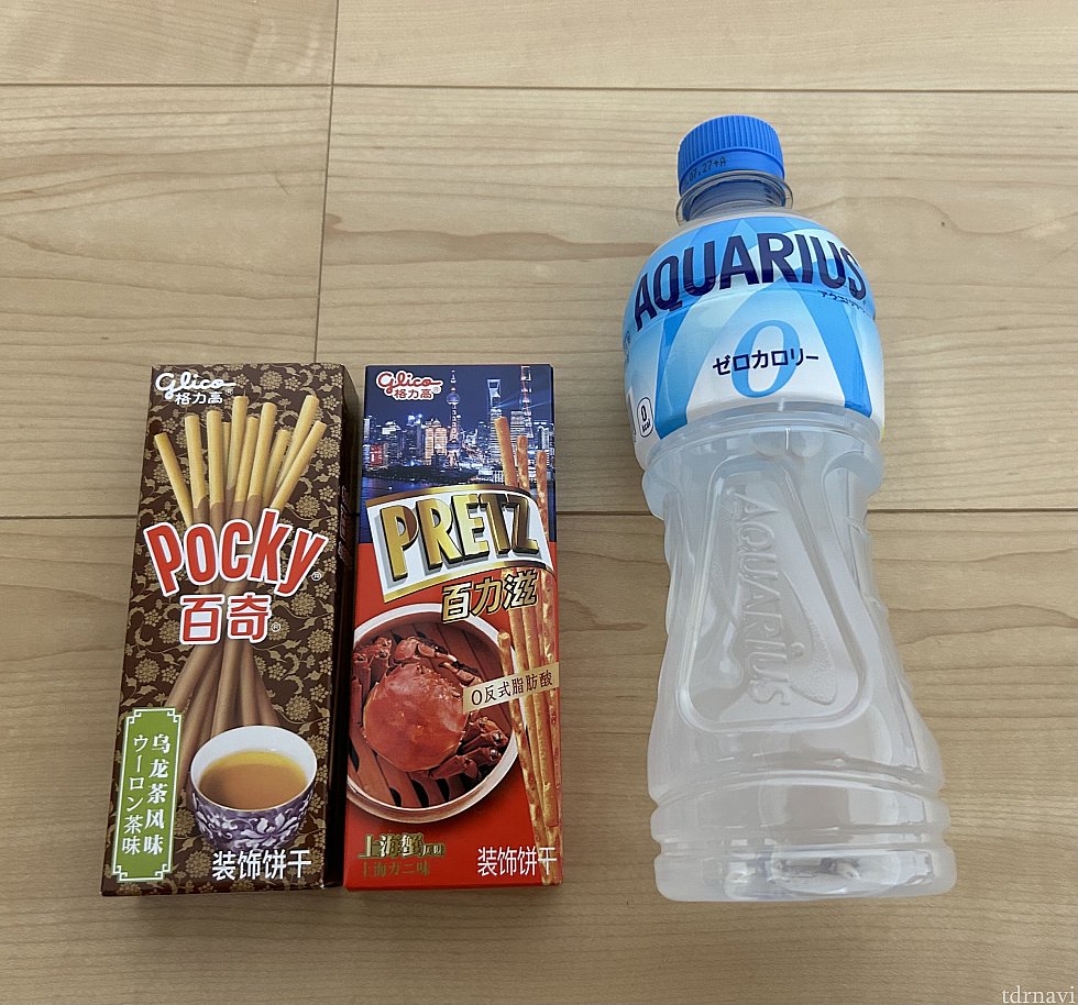 余談になりますが、ディズニーのお土産にこだわりがなければ、中国限定味のグリコのプリッツ・ポッキーが空港(出発のチェックインカウンターのフロア)で売ってましたので、ばら撒き用におすすめです。