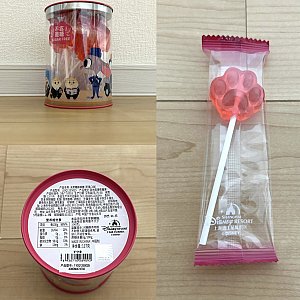 今まで行った海外ディズニーの中で、一番お土産に適したお菓子がありました。(値段と種類的に) お菓子の数が揃っていたのは入り口のアーケードのお店ですが、各エリアでも一つぐらいはそのエリアのお菓子が置いてあったりしました。(トゥモローランドにはトイストーリーの缶クッキーがあったと思います。)ただ、大変だったのは中身が何なのか、いくつ入っているのかわからなかったことです。ほとんど缶の中に入っているお菓子のため、予想もしににく、一つずつ手にとって、食品表示をGoogle翻訳にかけ、何のお菓子か調べました😅(中国語表記さっぱり分かりません…)また、食品表記には個数が書いてません😭 なので、アップルキャンディ以外、初めからばら撒き目当てで買ったというよりも、自分用に買ったものを開けてみて、ばら撒きにも適していると知った形です。