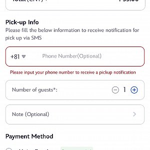 こちらのお店ももちろんモバイルオーダーでした!モバイルオーダーの準備が出来たらSMSで通知が来るように電話番号を入力する欄があるのですが、こちらいつも入力するとエラーになる(最初の0ありなしどちらもNG)ので入力してません🙅♀️その状態で決済に進めないという方は、多分ページ下部のチェック抜けていると思うので確認してみてください😄