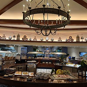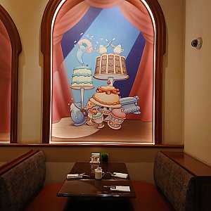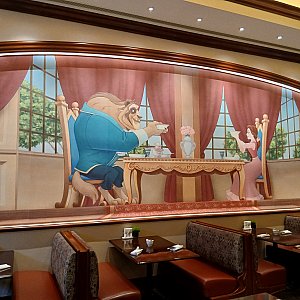 ディズニーランドホテル内にあるビュッフェタイプのレストランです。お食事中にキャラクターが歩いて来てくれたり、専用のフォトスペースで写真撮影ができます(お食事代金に含まれています)。