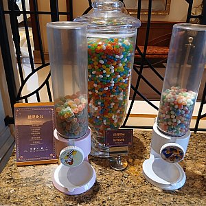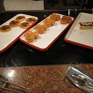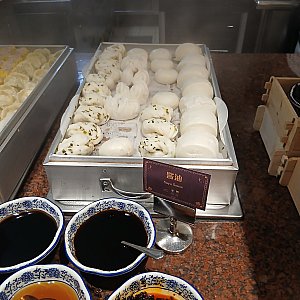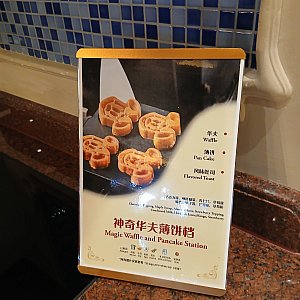 一部英語表記もありましたが、ほぼ中国語表記だったので、見た目で判断してお料理を取っていました。中華料理やパン、甘いお菓子の種類は豊富でしたが、フルーツ類が少ない印象でした。