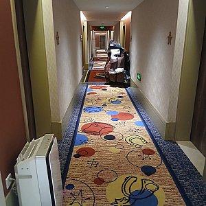 私は遭遇しませんでしたが、フロント周辺にウッディ達が遊びに来ている事があるようです。恐らく、お昼頃~パーク閉園より前の、比較的混雑が落ち着いた時間帯に現れるのではないかなと予想しています。