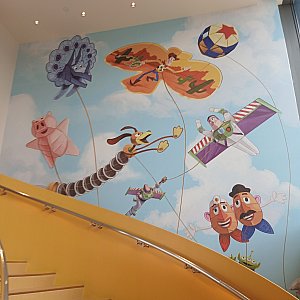 ホテル内を散策していると、キッズプログラム?中のキャストと子供達の一団に出会い、そのキャストさんが我々にもトイ・ストーリーのシールを下さいました。サプライズプレゼントのようでとても嬉しかったです!