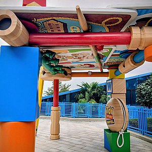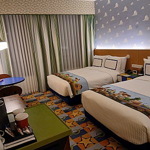 個人的に公式ホテルに泊まる一番のメリットだと思っています。入口から部屋、そして外の敷地内まで全てトイ・ストーリーで彩られたこの場所は、最早もう1つのテーマパークと言っても過言ではありません。
