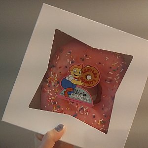 有料のショッピングバッグで、恐らくドーナツを入れれるようにマチが広めのものが売っていたので、それに入れてホテルに持ち帰りました。